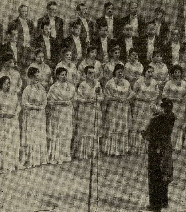 К удачам надо отнести и яркую передачу украинской народной песни в обработке Н. Ракова «Ой, дуб, дуба», а также благородной патриотической «Песни труда» О. Тактакишвили, написанной в духе грузинских гимнических песен.