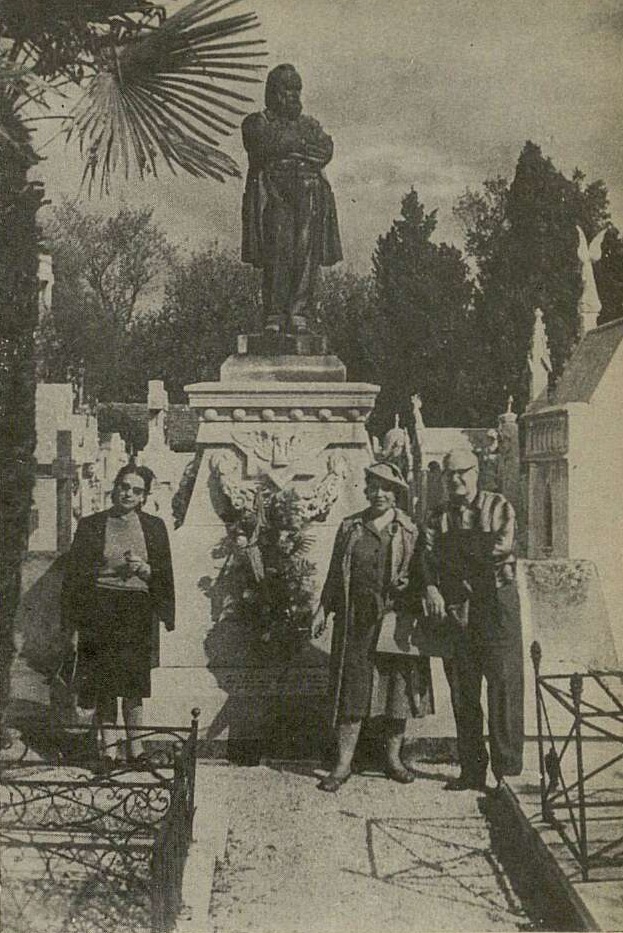 Дорога к кладбищу идет через старую Ниццу, с ее старинными улочками, которые разительно контрастируют с богатейшими и роскошнейшими проспектами международного курорта. И вот на одной такой бедной и мрачной улице, узкой, грязной и столь тесной, что по ней не пройдет и маленький автомобиль, мы увидели на жалком, облупившемся доме мемориальную доску, напомнившую нам о том, что в этом доме жил и умер Никколо Паганини. Стало грустно от мысли, что гениальный скрипач и композитор умер в такой мрачной обстановке и что в наше время, когда Паганини чтит весь мир, во Франции не находится средств привести в приличный вид дом — последнее пристанище великого музыканта на этом свете!