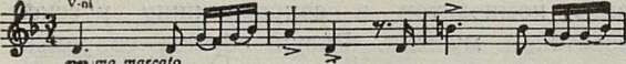 Характерна и фактура сопровождения. Как правило, она прозрачна и вместе с тем насыщена подвижными средними голосами; иногда последние заполняются арпеджированными триольными фигурами, иногда же — хроматическим движением параллельных интервалов — терций, секст.