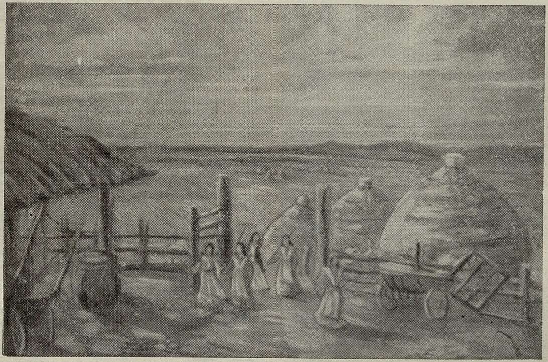 Колхозный ток. Эскиз декорации М. Арсланова к опере Н. Пейко «Айхылу»