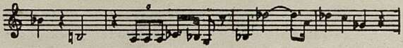 Обилие острых, угловатых интервалов — уменьшенные октавы и квинты, малые ноны — общее «поветрие» музыки XX века; оно, очевидно, связано с антиромантическими тенденциями и, в частности, с отказом от песенно-вокальной стихии, на смену которой приходят острая интервалика возбужденной речи, интонации жеста и движений, чисто инструментальная мелодическая стихия. И вместе с тем одна из двух наиболее ярких попевок главной темы находится в явно родственных связях с типичным импульсивным романтическим оборотом.