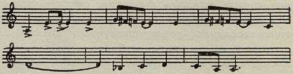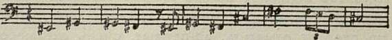 Фортепиано и цимбалы мерно отстукивают басовую основу; контрабасы и бас-кларнет ведут тупой, назойливый мотив — неизменные ходы на уменьшенную терцию: вверх — вниз, вниз — вверх. Тот же круг совершают секундой выше фагот и контрафагот и дальше — уже большими септаккордами — медные (туба и валторны)1.