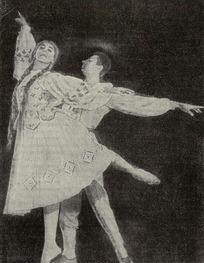 Мы еще раз оценили глубокое знание народных литовских танцев балетмейстерами В. Гривицкасом и А. Мессерером. Оценили их умение разнообразно подходить к использованию народного танца — от буквального воспроизведения его традиционных движений и фигур до разработки отдельных фольклорных элементов, образно раскрывающих внутренний смысл сцены. Иногда балетмейстеры совмещают эти два приема и тогда их постановка приобретает форму народной темы с вариациями. При лепке хореографических образов действующих лиц балетмейстеры сознательно ограничивают себя отбором движений народного танца и этим достигают точности характеристик. Словом, литовские балетные спектакли доказали, сколько свежего, интересного можно почерпнуть из неиссякаемого источника народного танцевального искусства, если подходить к нему творчески.