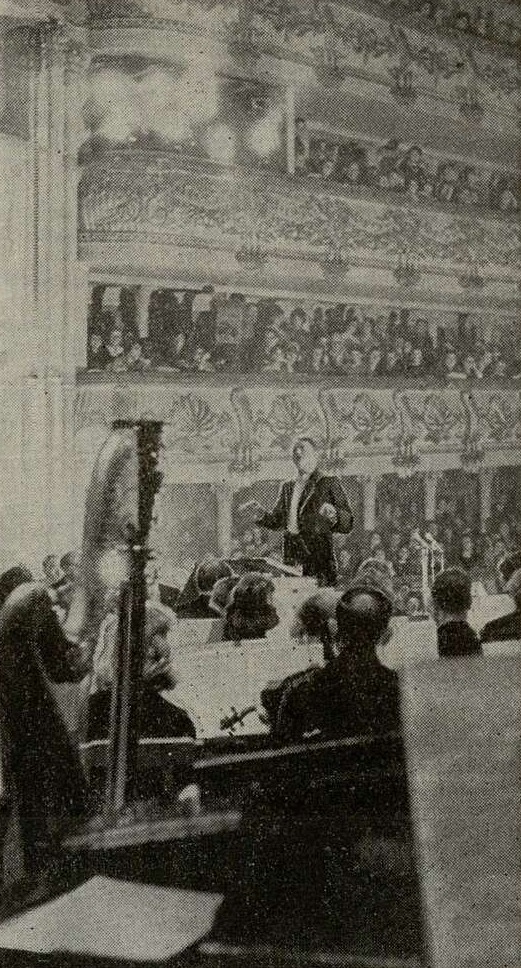 ...Зал драматического театра им. Горького набит до отказа. Выступает симфонический оркестр Московской филармонии. Дирижирует К. Кондрашин.