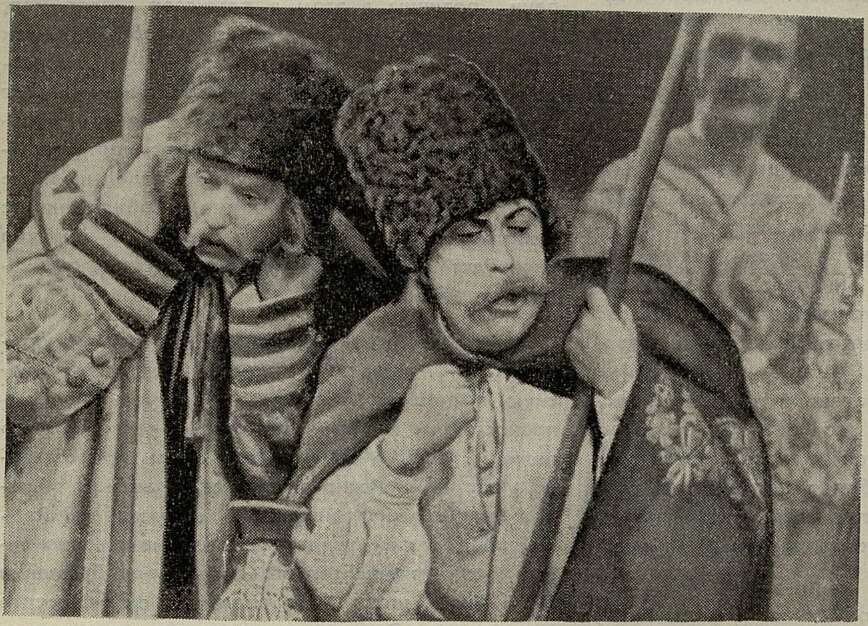 Великолепно, в плане острого гротеска изображены император Ференц (С. Ценин), тщетно пытающийся играть роль если не главы государства, то по крайней мере главы семейства, и его супруга Мария-Терезия (Т. Янко), и речью и манерами удивительно похожая на бойкую, плутоватую надьабоньскую кумушку (вспомните хотя бы ее наставления дочери перед предстоящим замужеством!). К сожалению, менее удачной представляется императрица Мария-Луиза (С. Корецкая): артистка нередко «переигрывает», излишне окарикатуривает образ. Разумеется, в «Хари Яноше» никого не следует изображать «всерьез», но нельзя впадать и в другую крайность, грозящую превратить комизм в развязность, а шутку — в банальность. В большой степени повинны в этом и режиссер (например, эпизод с флягой «венгерской особой» никак нельзя назвать счастливой находкой) и либреттист (В. Поляков): язык, которым он заставляет говорить Марию-Луизу, местами слишком «осовременен», стилистически не всегда соответствует речи остальных персонажей; отдельные же реплики (в сцене у шлагбаума, в объяснении с Наполеоном — требование развода по причине «несходства характеров») попросту не отличаются хорошим вкусом.