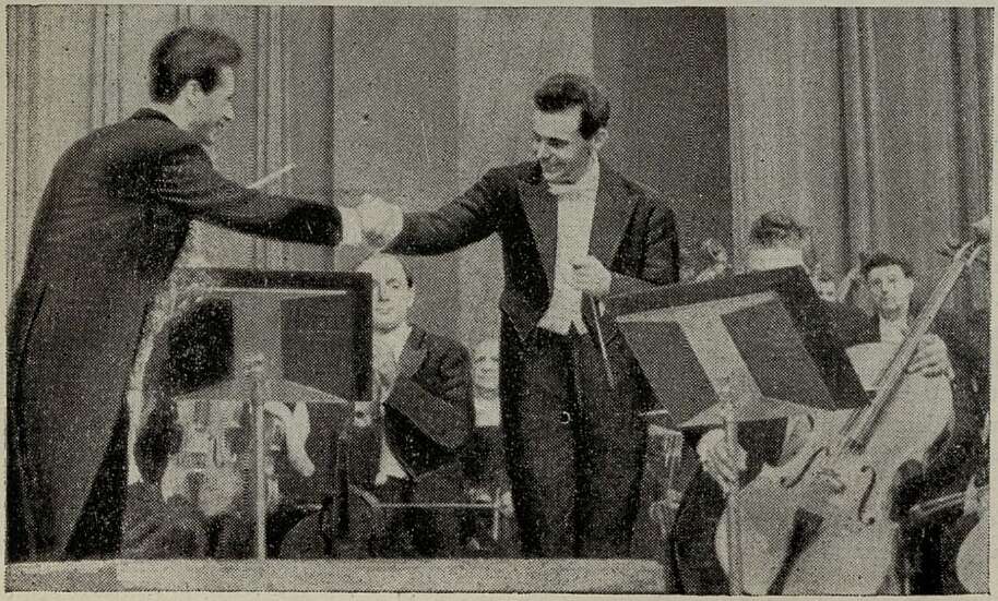 На конкурсе им. Энеску, 1961 г. Румынский скрипач Штефан Руха и американский дирижер Лорин Маазель после концерта