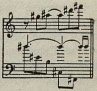 Гармония лада в целом начинает, однако, приобретать доминантовое наклонение. Это сужает, естественно, возможности гармонического развития. Если в традиционной ладогармонической системе структурное несовпадение аккордов часто дополняло и подчеркивало их функциональное различие, то здесь это дополнительное средство контраста нивелируется. Но такое преобладание доминантовых устремлений в большей степени соответствовало образному содержанию скрябинской музыки. В ней появляются какие-то неуловимо тонкие эмоциональные нюансы. Например, новая форма тоники в начале Поэмы ор. 44 № 1 имеет колорит какого-то неопределенного, смутного ожидания: