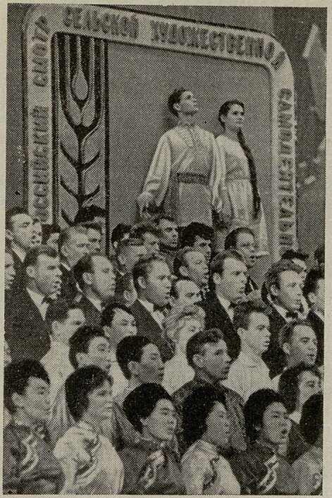 Закончился смотр сельской художественной самодеятельности Российской Федерации. Заключительный тур проходил в Москве. На нем было представлено свыше 200 коллективов. Выступали люди разных профессий: колхозники, механизаторы, агрономы, врачи, педагоги, домохозяйки — участники хоров, танцевальных и инструментальных ансамблей, певцы-солисты, чтецы, акробаты... Репертуар был необычайно широк: народные песни и танцы, западноевропейская и русская классика, произведения советских композиторов.
