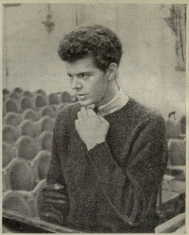 В третий раз с неизменным успехом прошли в стране гастроли Вэна Клайберна. Эта фотография, сделанная в 1958 году, возвращает нас к напряженным дням Первого конкурса им. Чайковского, когда Вэн Клайберн готовился к решающему этапу состязания — третьему туру. Артист оркестра филармонии Ф. Латыпов заснял пианиста в момент репетиции Первого фортепианного концерта Чайковского.