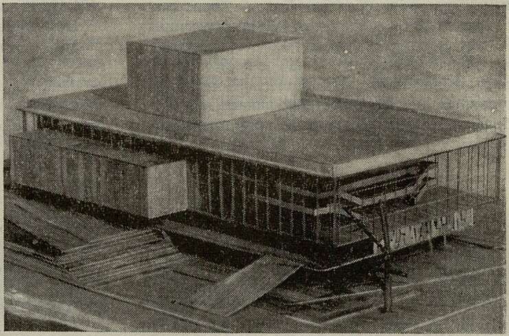На столе у директора Литовского оперного театра композитора В. Лаурушаса фотография макета театрального здания.
