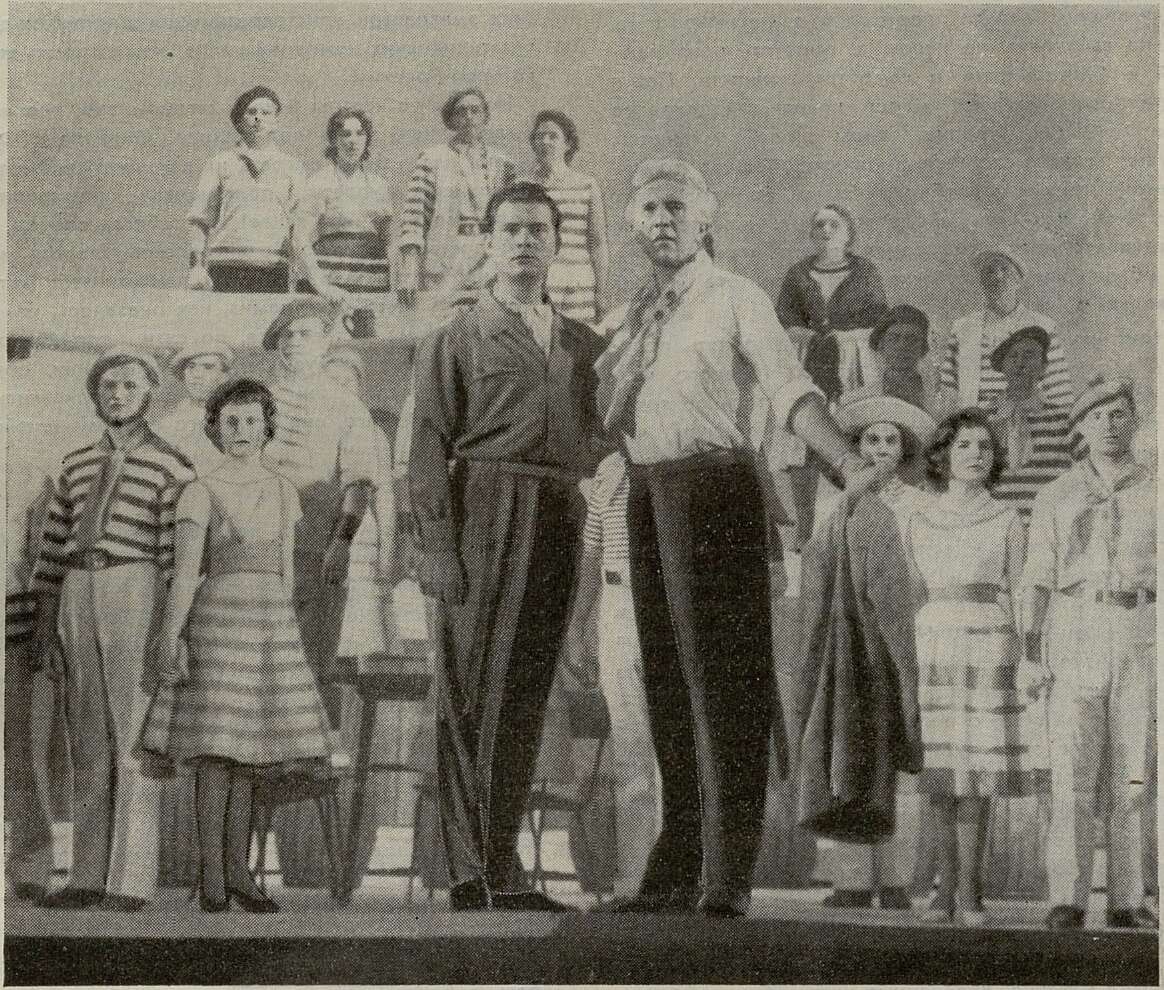 Но подчас театры искали штампы там, где их не было. Я хочу взять под защиту Филиппа и Фому. Очень легко было сыграть их как шутейников-пересмешников. Куплеты, подтанцовки, перманентное бодрячество — чего яснее! Но, забегая вперед, скажу: достаточно было Ленинградскому театру музыкальной комедии в 1965 году увидеть этот матросский дуэт «свежими очами», как оказалось, что Филипп и Фома, оставшиеся, по сути, неприкосновенными в словесно-музыкальном выражении, обрели новое качество: они органически «вписались» в круг друзей Янго, они стали его единомышленниками, помощниками.