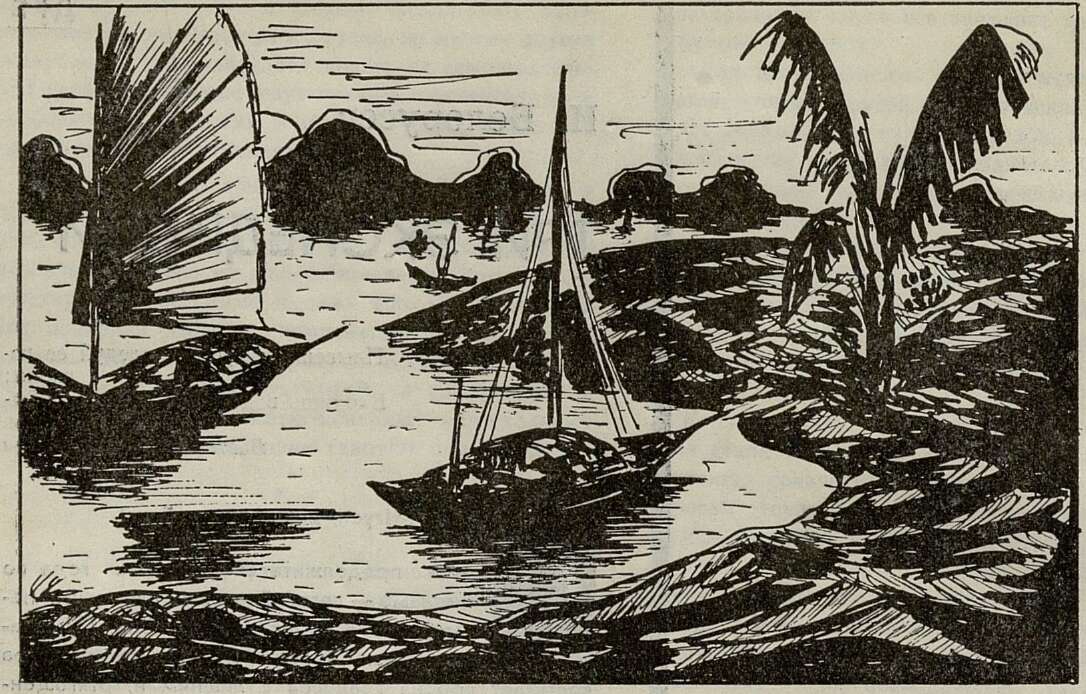 Нас поднимают в шесть утра, и мы немедленно отправляемся в путь. Дорога уходит в горы. Их голубые, кажущиеся вначале призрачными контуры постепенно темнеют; сквозь облака проступают склоны, покрытые густыми лесами. Сначала попадаются отдельные вершины со скалистыми обрывами, пышной растительностью и лианами. Их становится все больше, и вот, наконец, мы прорываемся к горам. Они сплошь затянуты густой сетью вечнозеленых тропических лесов. Среди их волнистых громад проглядывают отвесные обрывы с темными зевами пещер; по-временам то одна, то другая вершина покрывается белыми шапками облаков и синих туч. Иногда горы внезапно расступаются, и тогда можно видеть большую долину со свайными постройками и рисовые поля. Из реки торчат головы целого стада домашних буйволов, принимающих прохладительную ванну. В тростниках и рисовой поросли трепещутся многочисленные стаи деревенских уток. И снова бесконечно вьющаяся, захватывающе интересная дорога...