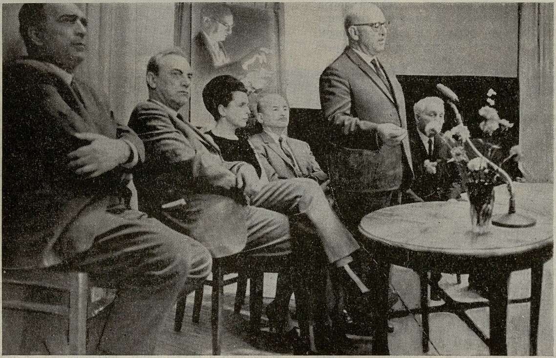 В президиуме вечера: И. Туманов, Б. Покровский, Г. Вишневская, В. Рындин, А. Рыбнов.