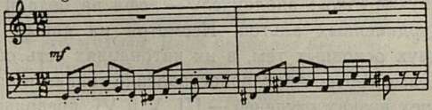 Третья часть относится, очевидно, к давно забытому жанру фантастического скерцо. Она представляет собой девяносто шесть вариаций на остинатный бас. Сделаны они с блеском и неистощимой изобретательностью настоящего мастера, хотя тема — диатонический пятитакг в натуральном миноре, — казалось бы, не дает богатых возможностей для развития:
