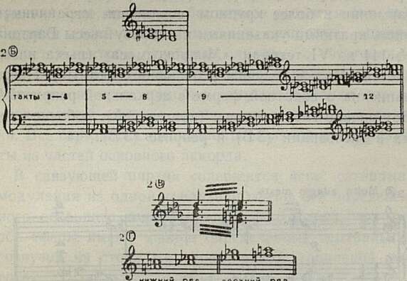 Стравинский в данном случае делает то же самое. Только вследствие новых условий тональной системы — ее двенадцатиступенности — функциональное заполнение означает функциональное заполнение двенадцати ступеней (или во всяком случае приближение к этому). К неиспользованным ступеням создается такое же тяготение, как и тяготение к субдоминанте, если ее не было в первом предложении классического периода.