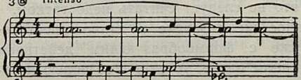 Во втором предложении средством более совершенного замыкания гармонического развития оказывается смешение звуков последних двух терций в обоих рядах, как показано в примере 2В. Два параллельно идущих, взаимно контрапунктирующих пласта в конце концов слились в единое целое, что безусловно наилучшим образом завершает все предыдущее развитие.