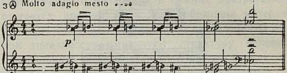 Нетрудно увидеть за этим соотношением воспроизведение в новом материале старого классического принципа. Существует немало классических периодов, в которых первое предложение функционально неполно (например, обходится лишь тоникой и доминантой, как в Adagio из Первой сонаты Бетховена), а второе обогащает гармонию полным использованием всех функций1.