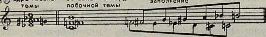 Побочная тема мелодически и гармонически произведена из главной. Сходство их гармонических структур показано на следующей схеме: