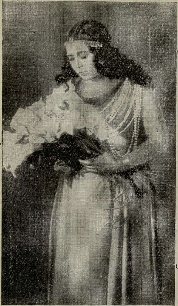 Навсегда запомнился и последний акт «Царской невесты». Как сейчас вижу: богато убранные царские палаты. Большое высокое кресло, в котором сидит Марфа, напоминает трон. Одежды окружающих ее людей, как и убранство палат, мрачные, тяжелые по тонам и фактуре. На этом фоне светлым пятном выделяются белый, затканный золотом сарафан Марфы, ее бледное лицо, окаймленное черными кудрями. Она сосредоточенно и молча смотрит куда-то вдаль, и всем кажется, что она пришла в себя. Но это только кажется... Сознание Марфы замутнено: стоящего против нее Грязного она принимает за своего жениха, Ивана Лыкова. Обращаясь к нему, Марфа рассказывает: