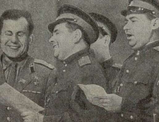 2. От имени космонавтов Б. Александрова приветствует Павел Попович, выступающий вместе с группой солистов ансамбля (внизу).