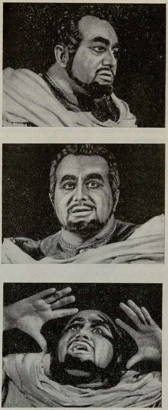 Почти на таком же напряжении построена и сцена Отелло и Дездемоны, разрешающаяся трагической паузой: подчиняясь грубому и нетерпеливому приказу мужа, ушла Дездемона; Отелло — Ноккер сник, замер, низко опустив темную с проседью голову...