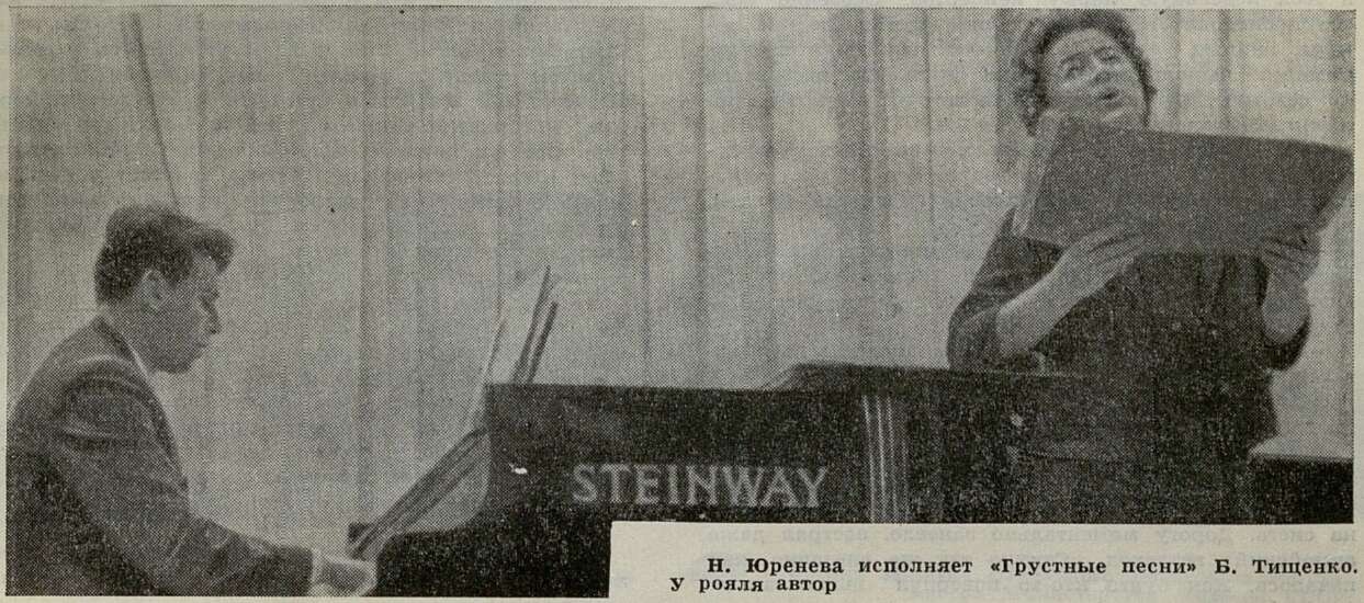 Н. Юренева исполняет «Грустные песни» Б. Тищенко.
