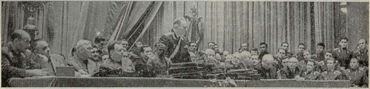 На снимке: торжественное заседание по случаю юбилея. Выступает художественный руководитель оркестра генерал-майор Н. Назаров