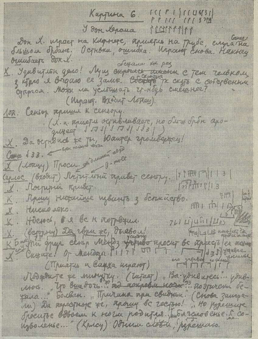 «План обручения» не только демонстрирует «расщепление» действия. Он в значительной мере дает представление и о музыкальном объединении его, синтезировании, о принципах, укрупняющих построение отдельных картин. Характер записи и расположение эпизодов позволяют увидеть своего рода «леса» будущего сооружения, представить композицию каждой картины в том виде, как ее замышлял автор.