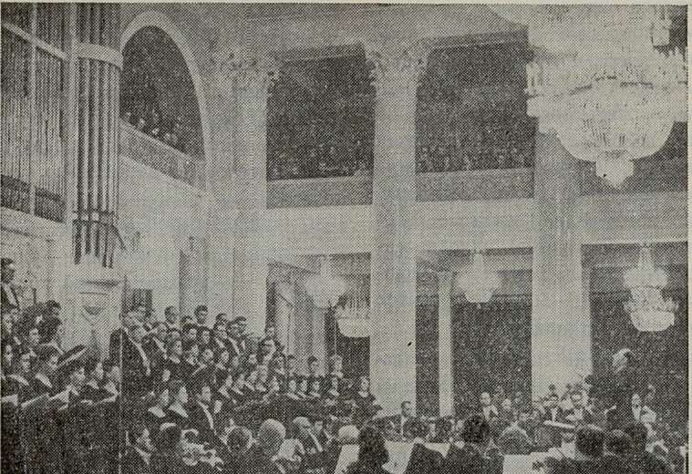 И с этой точки зрения трудно еще сейчас, после самых первых исполнений, дать исчерпывающую оценку серьезной и ответственной работе, проделанной хором капеллы. Во всяком случае эту работу не хотелось бы считать законченной: мы имеем в виду сам процесс вживания в грандиозную партитуру. Ведь произведения, подобные мессе, вынашиваются годами, шлифуются и совершенствуются от исполнения к исполнению. В работе над такими произведениями складываются исполнительские традиции, растет мастерство коллектива, его художественная зрелость. И нам кажется, что коллектив капеллы на пути к этой зрелости.