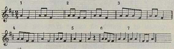 Сознательное, свободное владение двумя ступенями со и ми в сравнительно разнообразном ритмическом движении достигается за три-четыре недели января — февраля. А до конца учебного года по плану необходимо сознательно овладеть еще одной ладовой ступенью — ля в разнообразных интонациях (с-л-с, с-л-с-м, с-л-м, с-л-м-л-с, л-с-м-с, л-м-с и т. д.) и в разнообразном ритмическом движении 1.