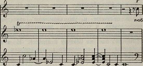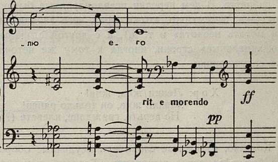 Аналогичным кодом, «кодом тревожности», служит секундовая «пчелиная» интонация, столь колоритная в песне Расстриги и Степана и «жужжащая» также во многих других эпизодах. Лейтинтонация? Но сама-то по себе она носит явно сопроводительный характер и может лишь дополнять что-то (так сказать, интонационный гарнир).