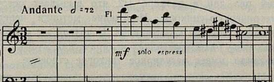 В отдельных случаях автор применяет все двенадцать ступеней диахроматической тональности, принцип, создающий не совсем обычный ладовый колорит. Сошлюсь для примера на пасторальную тему в начале финала (см. прим. 4) или на вторую тему этой же части, в которой наблюдается одновременно политональность и полиладовость: