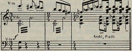 Весьма активна роль подобных драматургических приемов в скерцо симфонии. При основном размере 2/2 перед вступлением главной темы один такт всякий раз дан в размере 1/2 , что вызывает острую метрическую синкопу. Изменение метрики нередко означает начало кульминации. С другой же стороны, медленно развертывающаяся лирическая музыка, как правило, имеет регулярное тактовое строение.