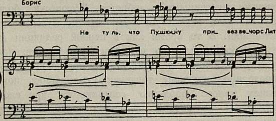 Более ярко выраженную интонационную индивидуальность и экспрессивность приобретает во второй редакции также и ответная реплика Бориса. В первой редакции ответ Бориса был построен на тематическом материале доноса боярина, что придавало его интонациям несколько иллюстративный характер: