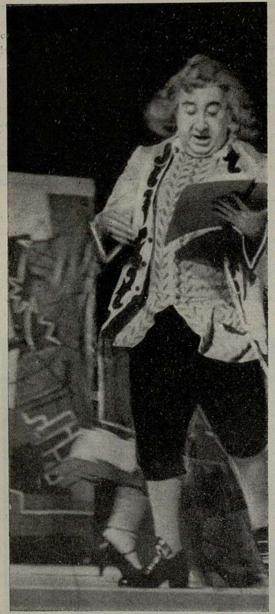 Как видно, обращение к исконно демократичной импровизационности, свойственной староитальянской комической опере, является лучшей профилактикой против актерских штампов и рутины, давно «осаждающих» ее старшую сестру — «серьезную» оперу. Нам показалось, что в талантливо сыгранной и спетой сцене «спектакля» в «Певицах» артисты с особенным удовольствием пародировали традиционные штампы, оперную вампуку, используя подчеркнутую выспренность и аффектацию жестикуляции и речи (дон Марко, которого опять-таки по-разному «подавали» Паоло Педани и Ренато Капекки), культ «звучка» (раскрывавшийся в том спортивном азарте, с которым все участники «спектакля» отсчитывали каждый такт длиннющей вокальной фразы, исполняемой Розой), а также пресловутое оперное перевирание слов: дон Марко трагическим тоном, раскатисто произнося эффектное «р» суфлирует: «О padre trraditorre!» («О, отец-предатель!»), а Роза, все внимание которой поглощено подготовкой к верхней ноте, произносит: «О padre mangiatore!» («О, отец-обжора!»).