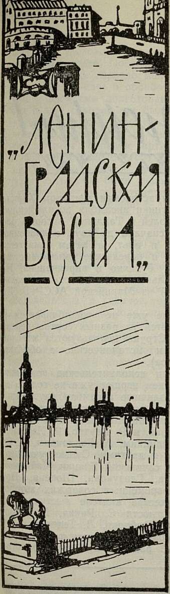 Второй раз весна приходит на берега Невы вместе с музыкальным празднеством. Последнюю декаду апреля занял второй фестиваль «Ленинградская музыкальная весна». Редакция попросила поделиться своими впечатлениями о празднике члена правления Московского отделения Союза композиторов РСФСР Г. Поляновского.