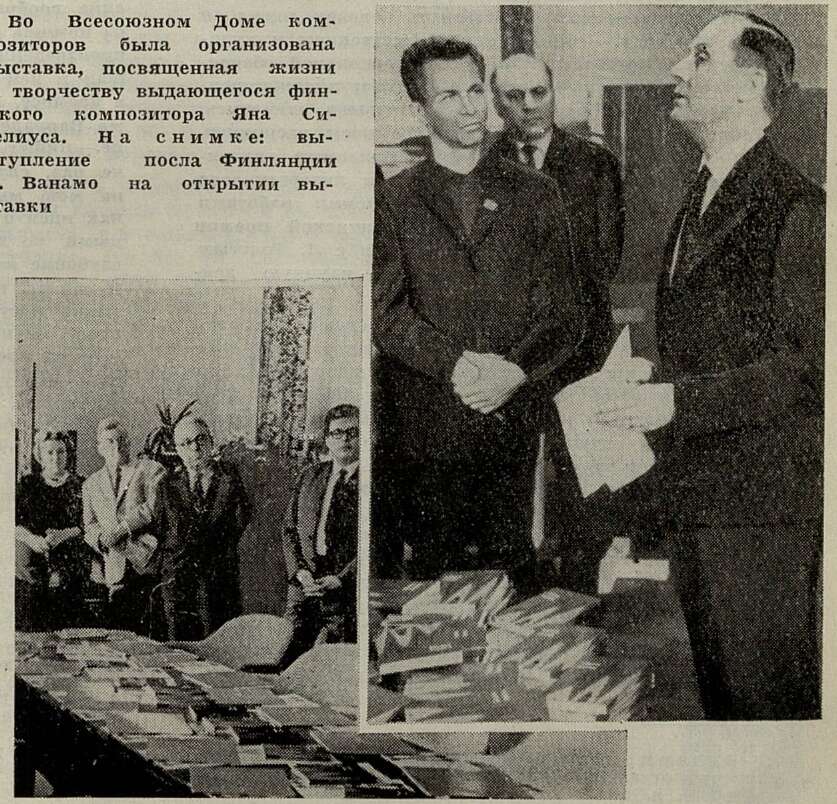 Во Всесоюзном Доме композиторов была организована выставка, посвященная жизни и творчеству выдающегося финского композитора Яна Сибелиуса. На снимке: выступление посла Финляндии П. Ванамо на открытии выставки