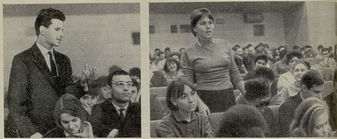 Однако, кроме возможности встретиться с яркой личностью, в «монографических» занятиях содержится еще одно «рациональное зерно». Они дают в какой-то мере цельное представление об одном музыкальном явлении. Такой цельности, систематичности недоставало насыщенной и разнообразной программе клуба. Вероятно, оттого в анкетах и в беседах многие члены клуба (большей частью совсем не имеющие музыкального образования) просили совмещать заседания на общие темы с лекциями об отдельных композиторах или группах авторов, постоянно рекомендовать литературу к последующему собранию, больше заботиться о самостоятельной подготовке аудитории. По-видимому, здесь можно найти немало «сопутствующих» форм. Шире использовать стенную газету «Эхо», которая помещала обычно краткие справки о композиторах, отзывы слушателей о сочинениях (некоторые присылали даже стихи), результаты анкет и непременно — фотографии с каждого заседания. Где-то к концу года активисты, с горечью сознавая, что теряют очень много времени (две недели между собраниями!), решили устраивать «дополнительные» четверги в Малом зале. Слушали музыку или просто собирались в тесном кругу «за чашкой чая», чтобы лучше познакомиться между собой, подольше поговорить. На такие четверги тоже приглашали интересных людей — поэтов и музыкантов.