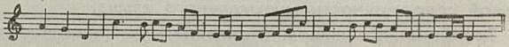 1 Этот отрывок не имеет прямых аналогов в русском музыкальном фольклоре, но интонационно связан с целой группой народных напевов. Здесь обобщенно претворены признаки, характерные для многих песен позднего происхождения, по стилю городских. То ли по ритму, то ли по интонационным контурам вспоминаются, скажем, «Славное море, священный Байкал», «Варяг», «Узник», «Смело, друзья, не теряйте», «Раскинулось море широко», «Крутится, вертится шар голубой», «Много песен слыхал я родной стороне» и т. п.