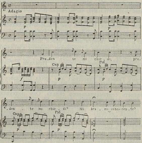 1 Ibid., р. 256. В спектакле были также танцы, поставленные братьями Турки. Но музыка балетных сцен обычно сочинялась в то время не автором оперы, а другим композитором.