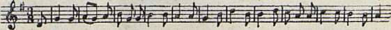 Долго жила и отразилась в немецкой народной мелодике песня «В Варшаве клялись, стоя на коленях» (см. нотный пример № 11). Текст ее, сочиненный поэтом Мозеном, был посвящен героическому 4-му полку (храбрейший полк восставших, от которого в живых осталось десять человек). Несмотря на то, что музыка на этот текст была написана трижды разными композиторами, наиболее известным стал народный вариант мелодии. Она была заимствована из польской песни «Думаешь ли ты об этом, мой смелый Лагиенко?» и, в свою очередь, восходила к одной из французских песен 20-х годов XIX столетия, связанной с традициями Великой французской революции и наполеоновских войн2.