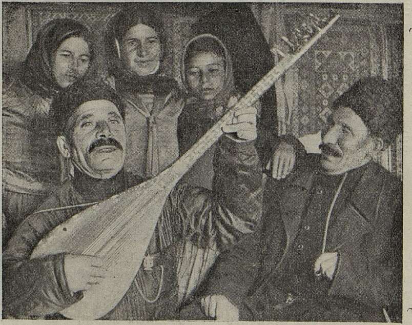 Асад Рзаев — популярный азербайджанский ашуг, принятый в Союз писателей, поет свои песни колхозникам селения Тауз.