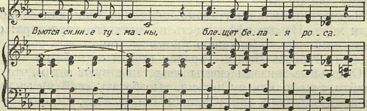 Чрезвычайно удачной следует признать «Песню о Щорсе», написанную на известный текст М. Голодного. Композитор нашел характерную и колоритную, полную живописной изобразительности фигуру аккомпанемента. Свеж и интересен гармонический язык и модуляционный план песни. Очень оживляет песню теноровое solo, прекрасно передающее диалогический характер текста: