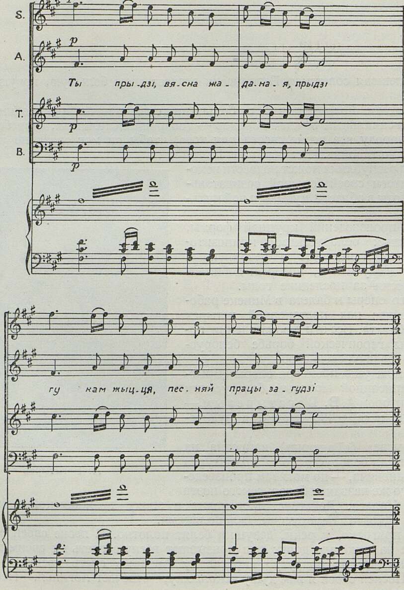 Эта драматически насыщенная сцена сразу вводит слушателя в настроение всей оперы. Песня (4-голосный хор) написана в духе белорусских протяжных песен: