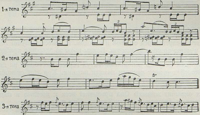 Она идет к пирующим и начинает танцевать. Танец ее спокоен, полон неги и грации. Первая часть его — нежно-лирического характера, во второй — больше движения, живости и огня: