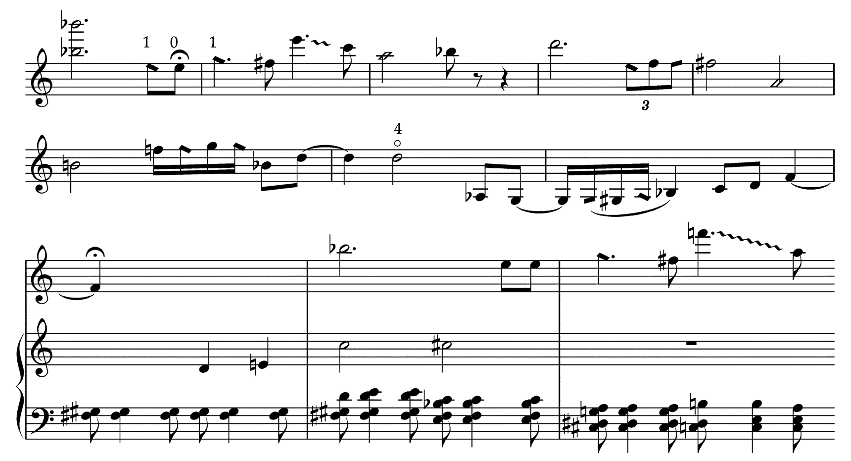 В свою очередь, и Вступление, и «Обещайте!» в рукописях представлены, скорее всего, не полностью. Эти эпизоды написаны на двух сторонах одного листа, от которого отрезана нижняя часть. Причем предположение, что мы лишились пустых нотных строк, увы, не подтверждается. Посмотрим на музыкальный материал Вступления, как он изложен на чистовике: три такта фортепиано соло, после чего стоит двойная черта, а следующий нотоносец (последний на странице) отведен уже под скрипку.