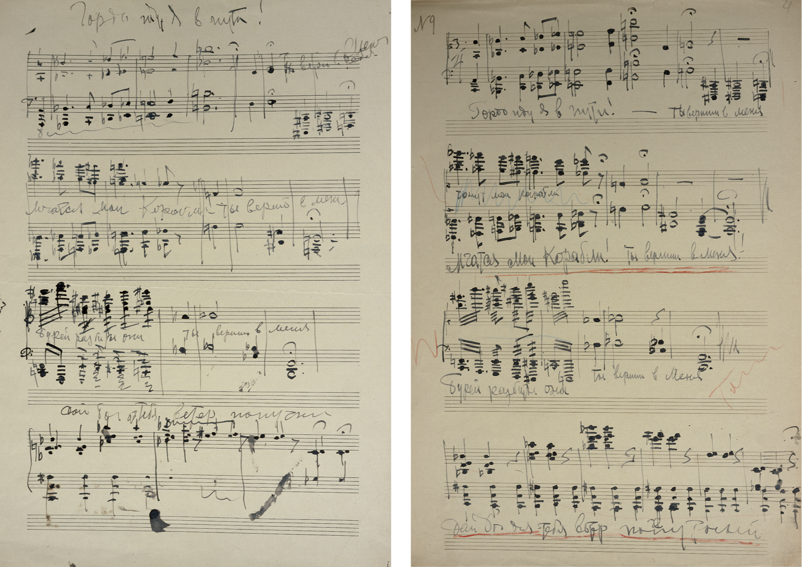 Илл. 2а, б. Авторские рукописи номера «Гордо иду я в пути». Атрибуция Сергея Уварова