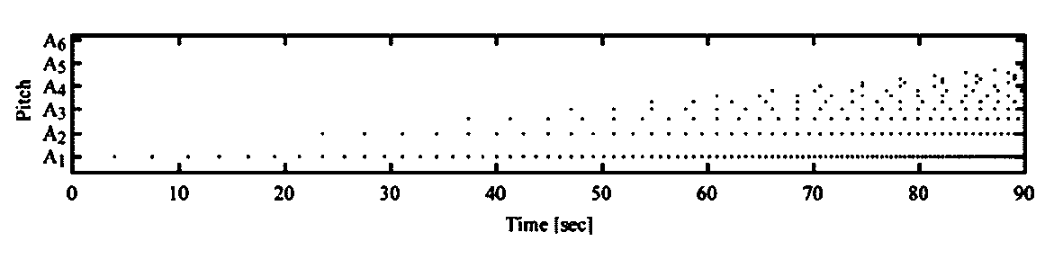 Example 5. J. Tenney. “Spectral CANON for CONLON Nancarrow.” Graphical pitch-time score [29, 106]