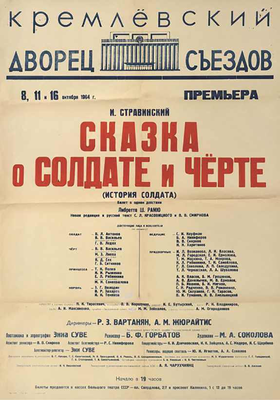 Fig. 1. Announcement of the ballet “The Soldier’s Tale” at the Bolshoi Theatre (1964). Electronic archive of the Bolshoi Theatre of Russia. GABT KP-3206/246