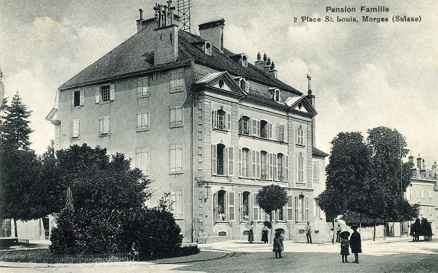 Франко-швейцарский акцент, привнесенный Рамю и намеренно сохраненный в переводе М. Савченко, приветствовался композитором. «Солдат» задумывался в кантоне Во, его идеи вызревали в содружестве живших в Романской Швейцарии людей искусства, близких Стравинскому по духу, — писателей Ш. Ф. Рамю и братьев Сенгриа, дирижера Э. Ансерме, художников Р. Обержонуа и А. Бишофа 17. Бóльшую часть своего «швейцарского изгнания», почти шесть лет, Стравинский с семьей провел в водуазском городке Морж на берегу Женевского озера. Это французское название — Morges — композитор забавно транскрибировал/склонял в письмах и музыкальных рукописях на русский манер — как существительное во множественном числе: Моржи́, в Моржáх и так далее. C 1915 до 1917 года Стравинские снимали в Мóрже виллу Реживю на улице Сен-Доминик, 2 18; с начала 1917-го и до переселения во Францию летом 1920-го — Мезон Борнан на площади Сен-Луи, 2 (илл. 3).